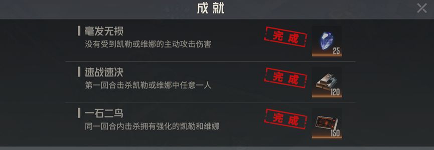 再来看本关的成就,三个成就如果一起做的话比较困难,分两次完成则会比较简单,第一次完成第二个成就,第二次完成第一个和第三个成就。