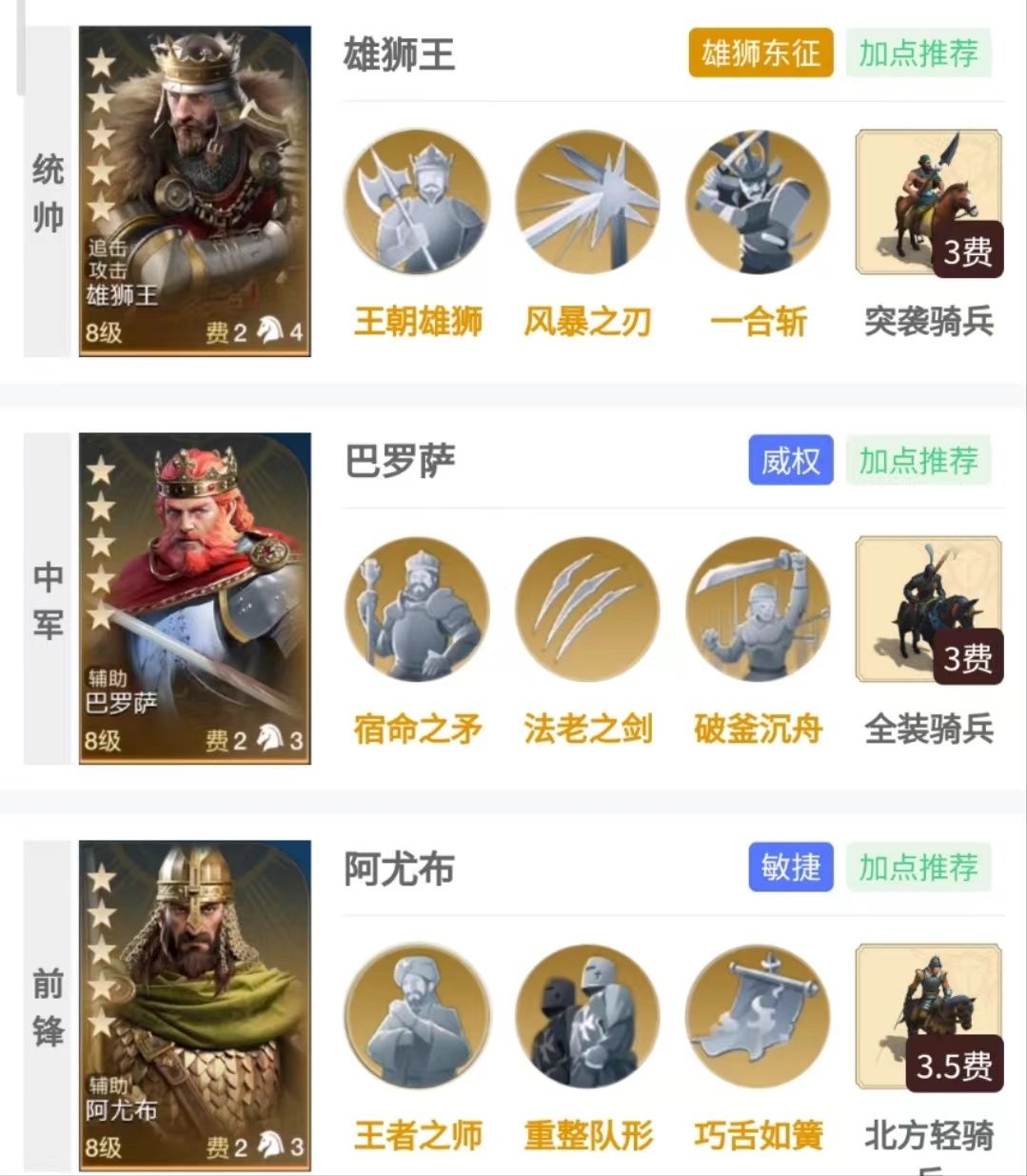 由于追击英雄的最高输出角色为雄狮王,要想达到阿尤布的最高配置,那么雄狮王几乎不可少,说阿尤布是他的御用拐都不为过。