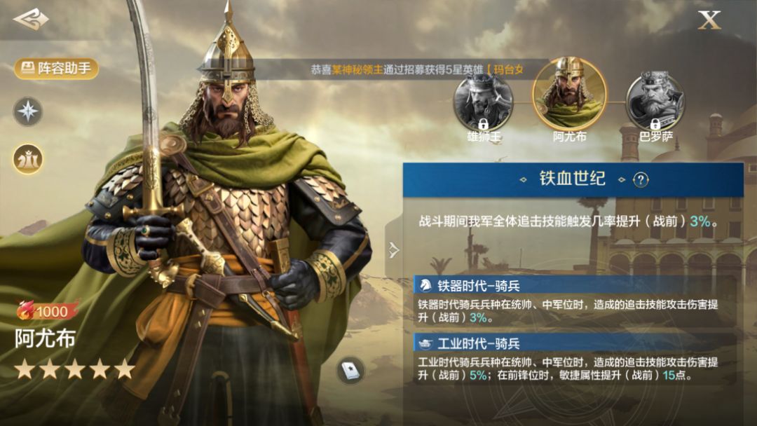 但要注意的是,阿尤布的技能值提供给友军的骑兵单位,所以那些非骑兵单位不适合和阿尤布配队,这点要尤其注意下。