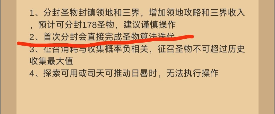 ②直接分封,放弃概率红利,放弃获得新圣物,或传火速度——圣物达到极限的老玩家可选。