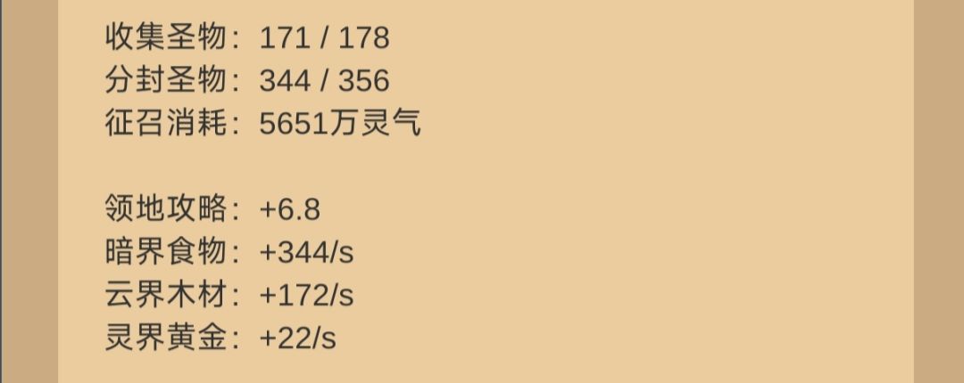不过圣物收集时间,可抵消灵气消耗,从而可以征召溢出数值的圣物。