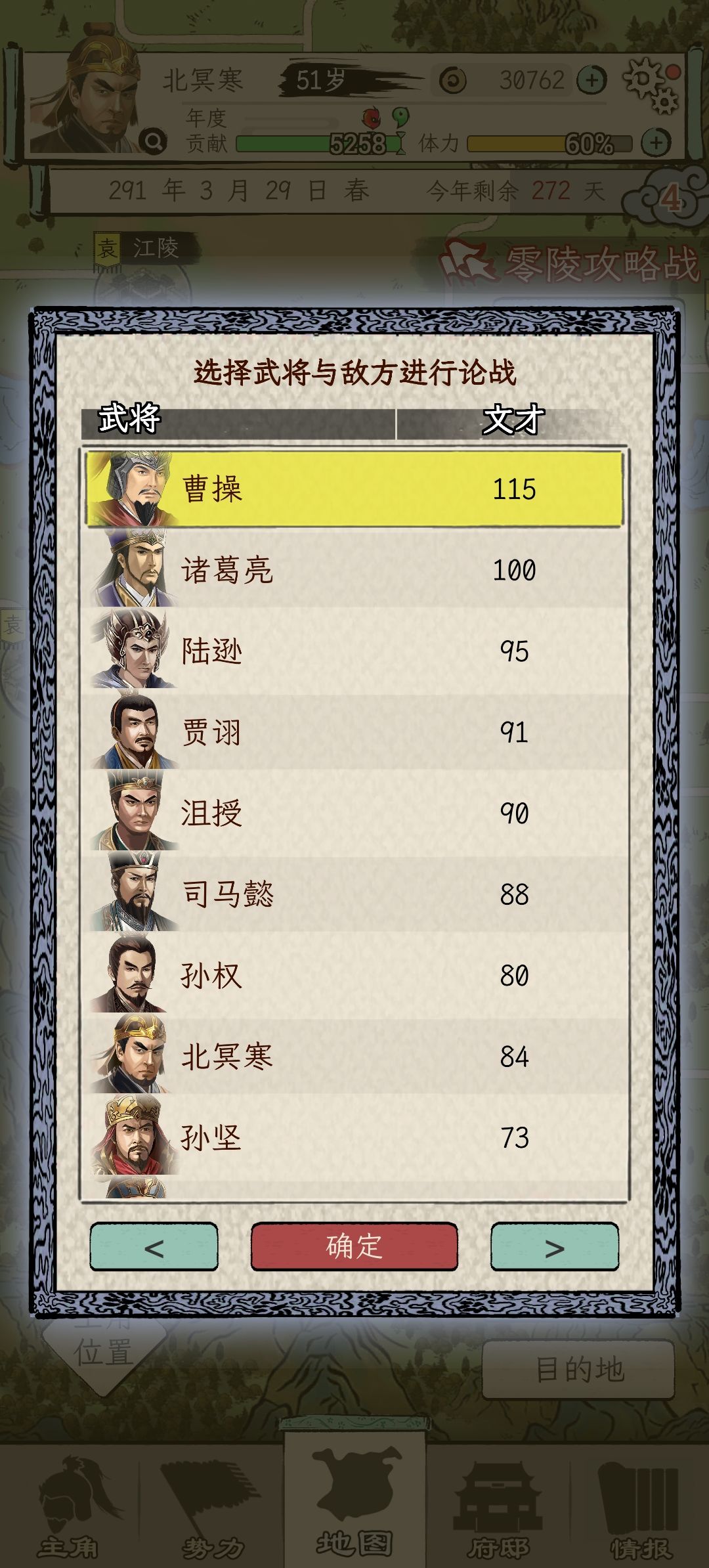 ①请保证你的城市是与其它势力的交界城——北边公孙和马腾的不行:因为太没存在感主公不会给你派人......、城市在势力内部同上——加自己加当年一张卷轴一共四个人,根本干不满基本要求。(赤壁之战可能出现的情况)-----苦逼到我直接重开了hhh