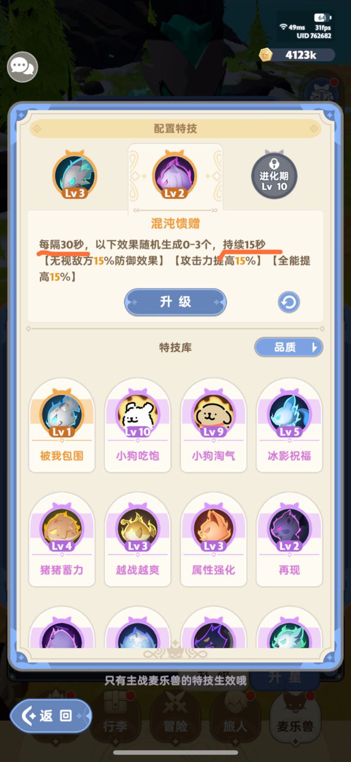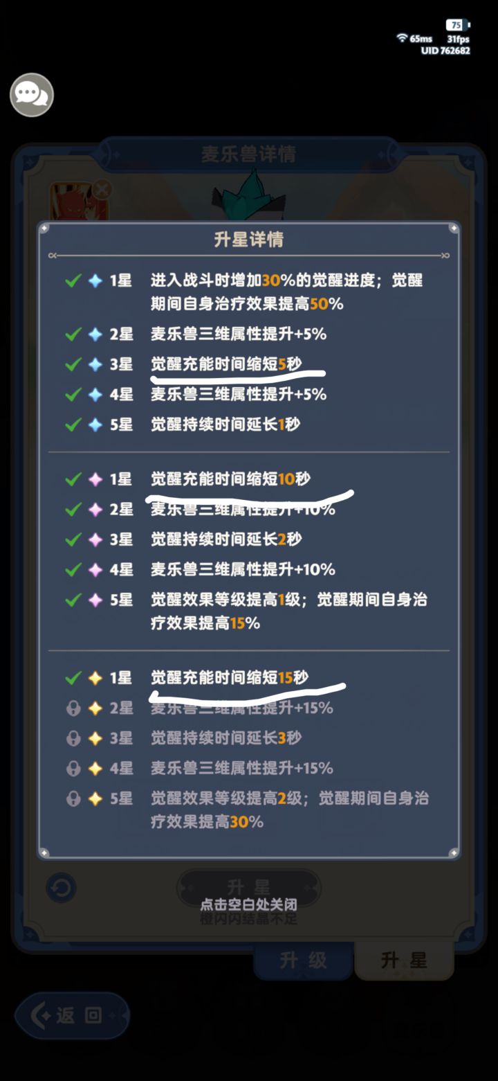 魔魔狗分别在绿3减5秒,紫1减10秒,金1减15秒cd。 所以金1魔魔狗的觉醒是60秒触发持续14秒(持续期间也算冷却) 配合混沌馈赠正好保证每次觉醒时触发混沌馈赠,且觉醒持续期间全程混沌馈赠。