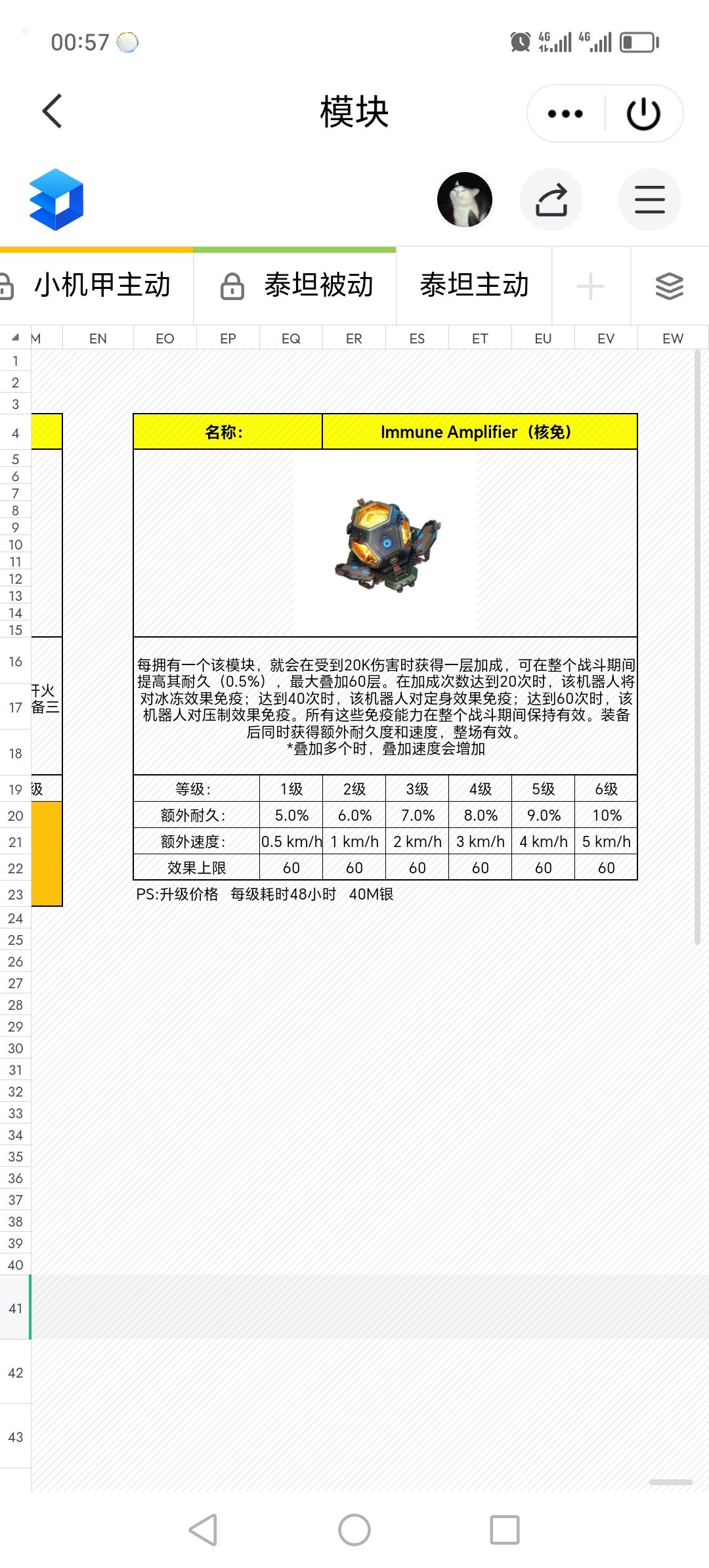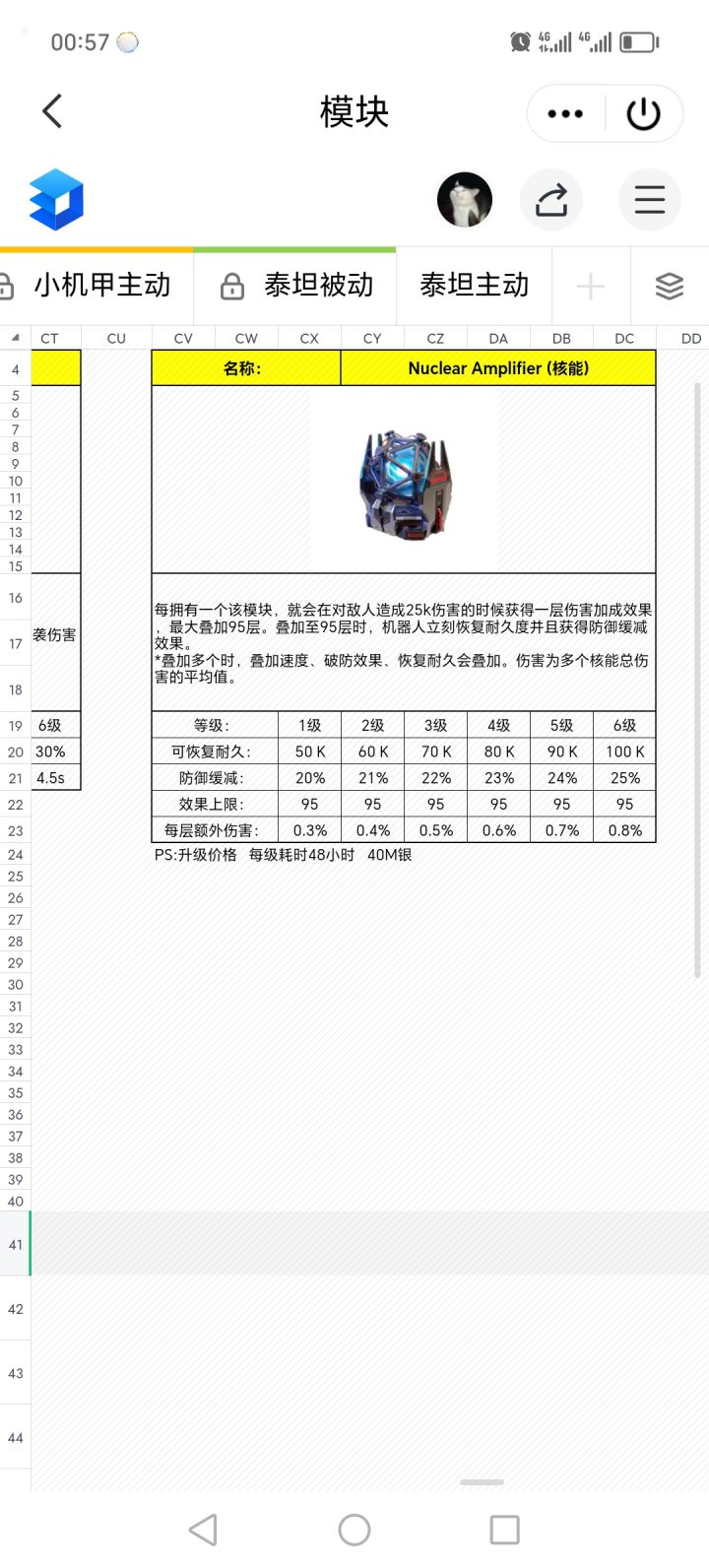 在你的分数上来之后,很多机甲都会因模块的质量而产生质变,在养成一套武器后,最推荐的培养就是部分模块。而模块中对于低氪0氪来说,最优先培养的模块是核放大器(核能,核爆都是他)