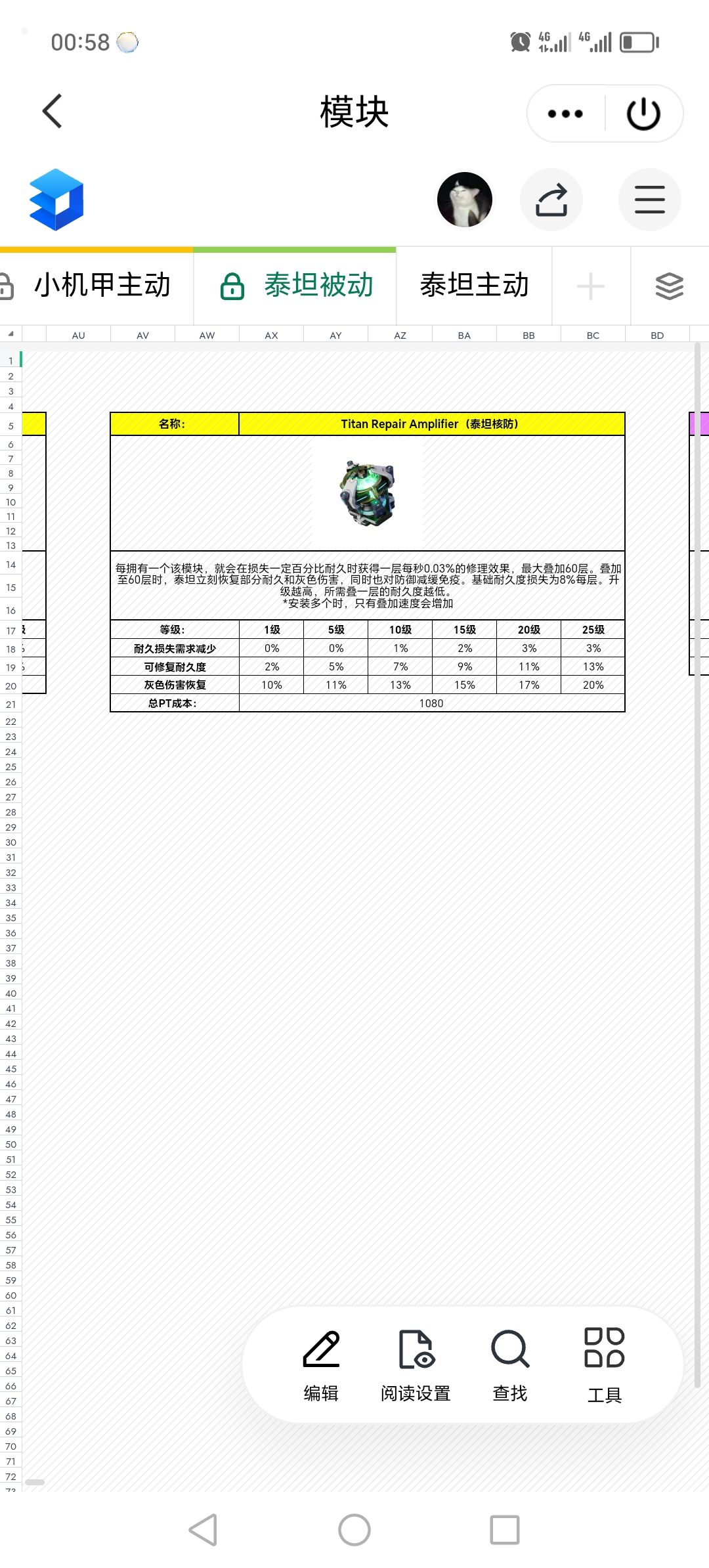 反泰坦:如果你没有核防,不妨和我一样,追求纯粹的伤害………对泰坦伤害非常高,但过于极端,坦度和对小机甲伤害会低一些(可以肝出来)