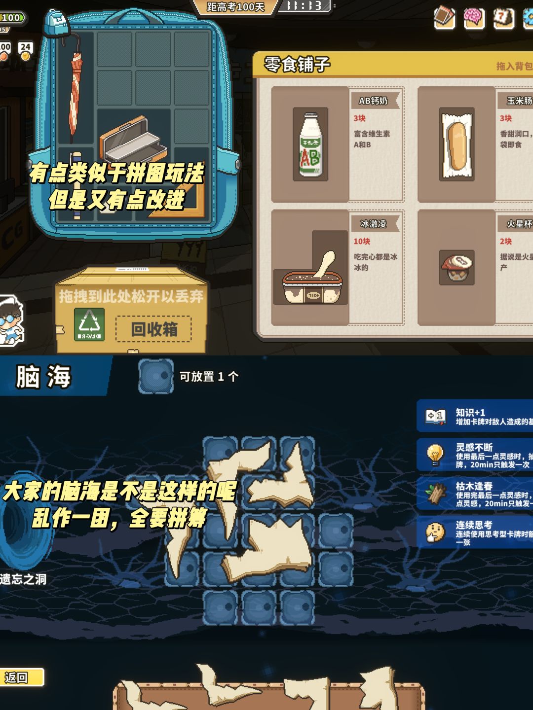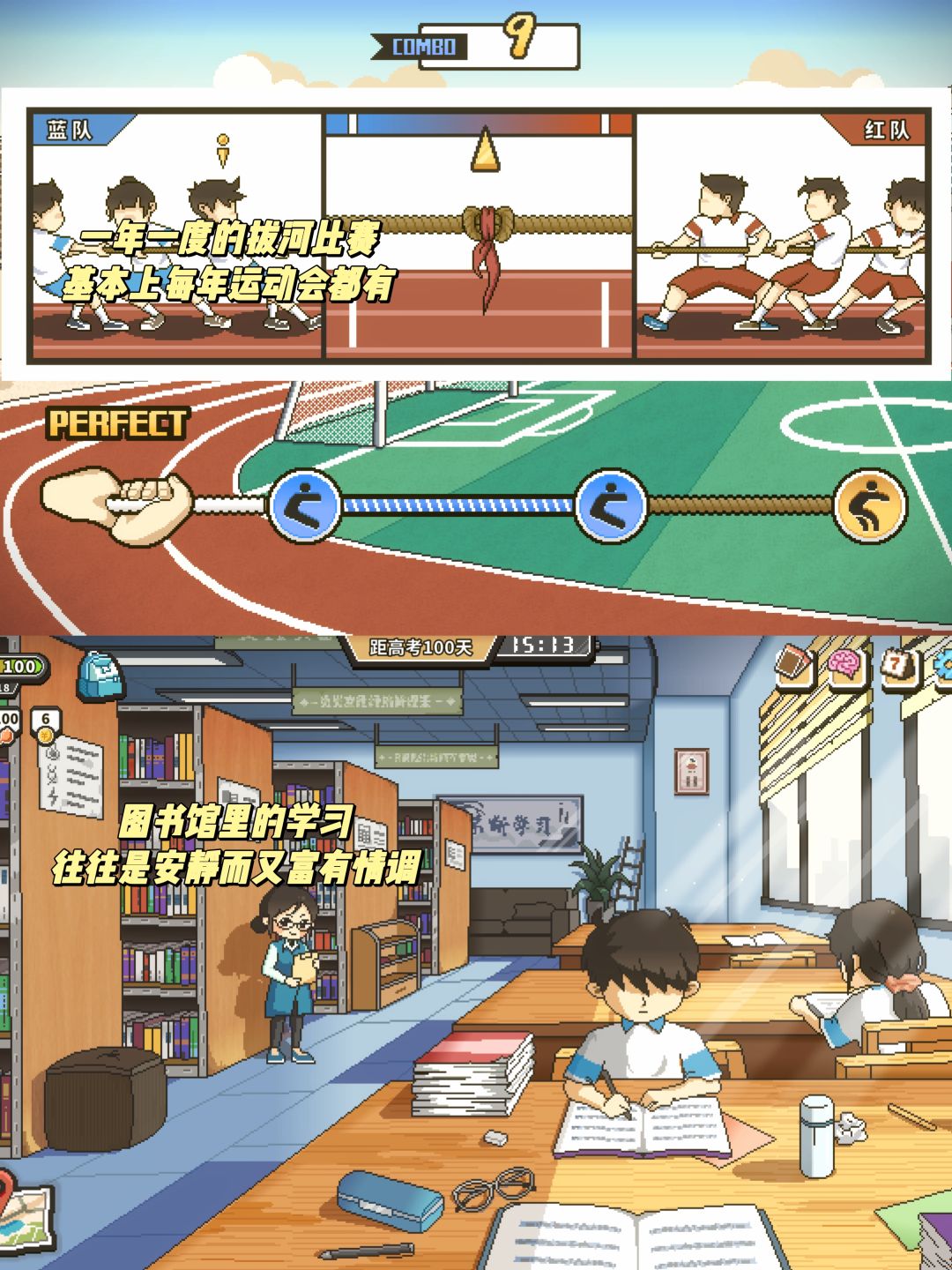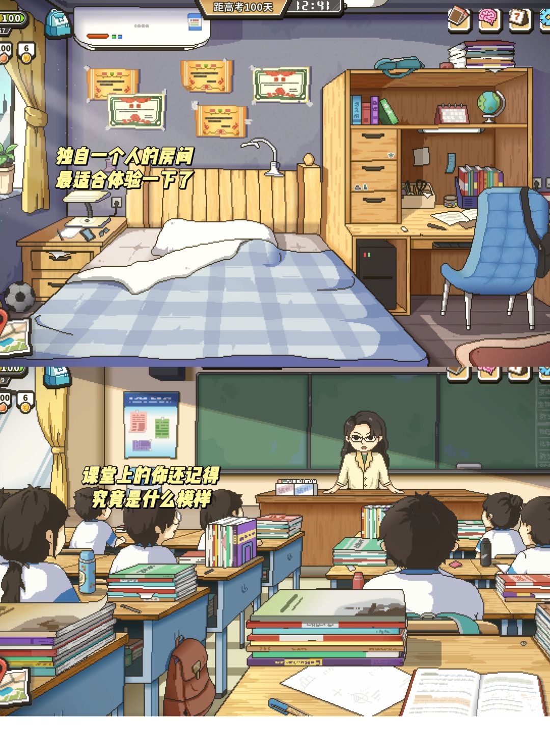 游戏是以天数作为游戏时间,100天的高考倒时,你可以自由选择。