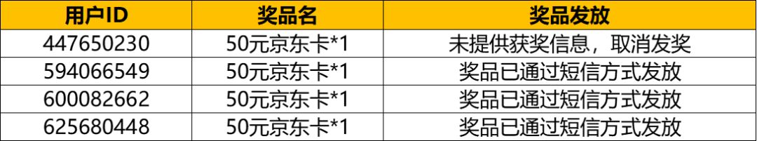 恭喜以下4位道友在本次端午节活动里中奖,相关奖品已通过短信的方式发放,还请收到奖品后第一时间兑换使用哈!