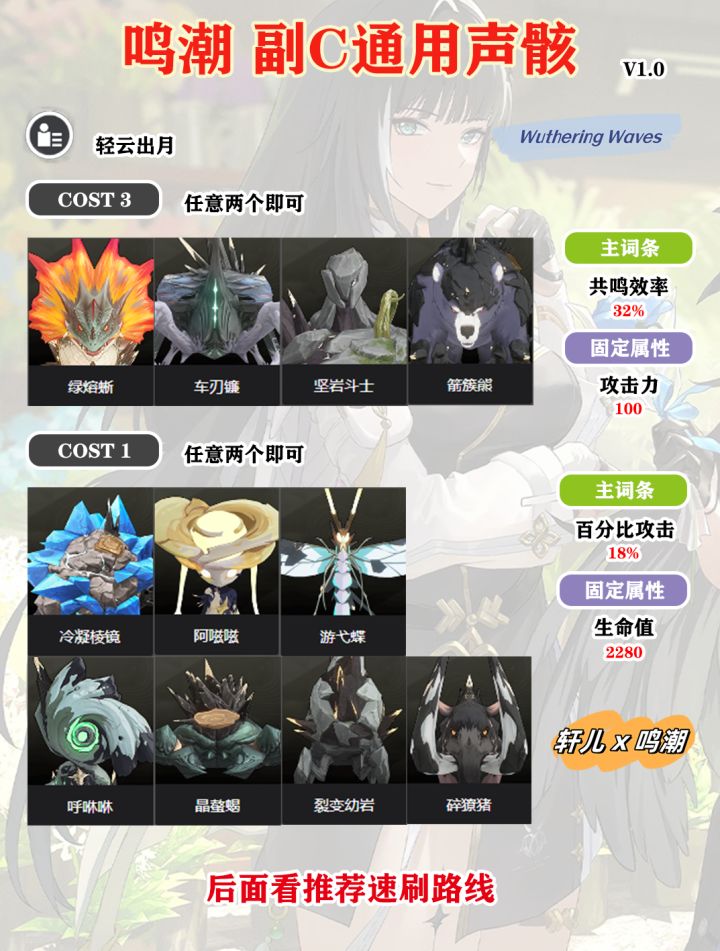 声骸培养成本过高?想培养二队三队?一套通用声骸帮你节省资源,所有副C辅助均可使用,打深渊深塔换着穿 | 新手老手声骸搭配必看攻略