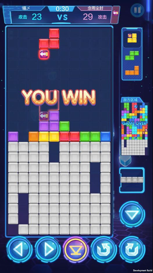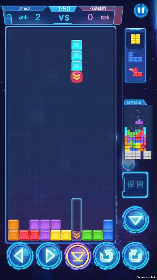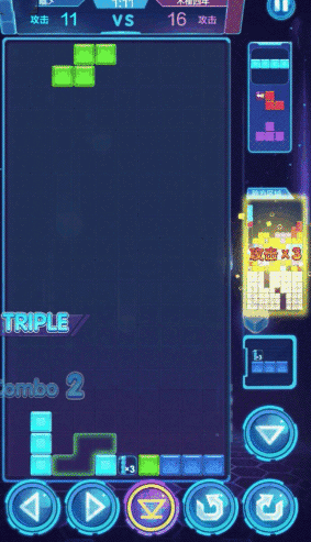 例如I块,通常需要左转让道具块置于最下方以便于马上触发,如果右转再要消第四行才能触发,很容易错过攻击的时机输掉比赛,而Z、S块则转180°放置。当然,还有很多类似细节需要你多多练习慢慢掌握,等到摸索清楚所有方块的特性后,你将在对局中无往不利。
