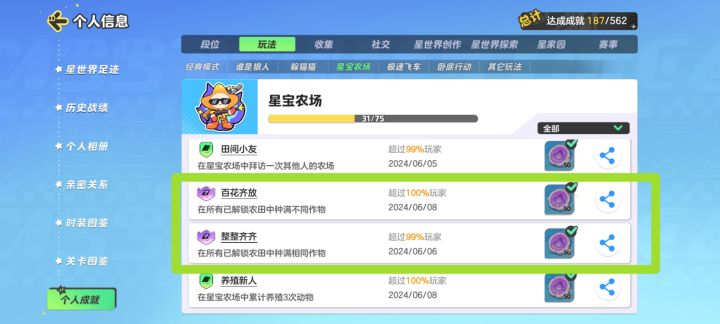 星宝农场玩法一共有三个隐藏成就,我目前解锁了2个