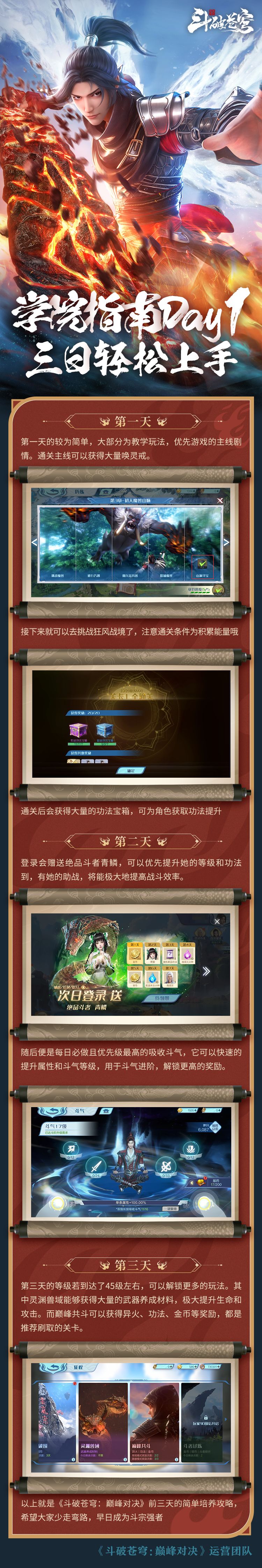 为了帮助各位斗者更好地体验《斗破苍穹:巅峰对决》,特此奉上迦南学院前三日的“上课”指南!请注意查收哦~