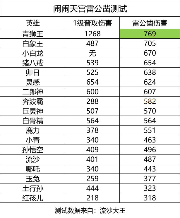 英雄技能CD越短,雷公凿释放次数越多,综合上述伤害来看,青狮王、小白龙、奔波霸等这些CD短,伤害高的英雄带雷公凿最合适。