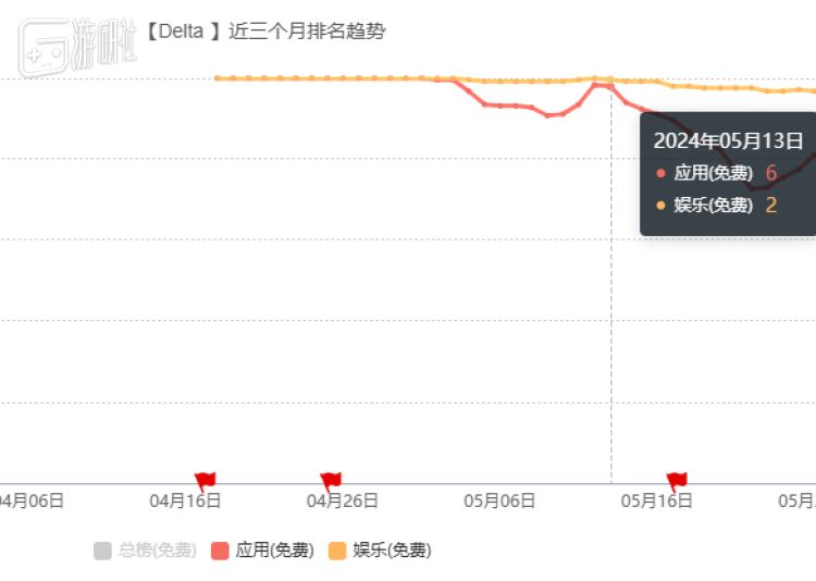 Delta模拟器在4月18日上架App Store后,就在北美霸榜近一个月,在国内也冲到过第二的位置。