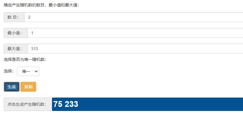 以下为在线随机数生成器抽取: