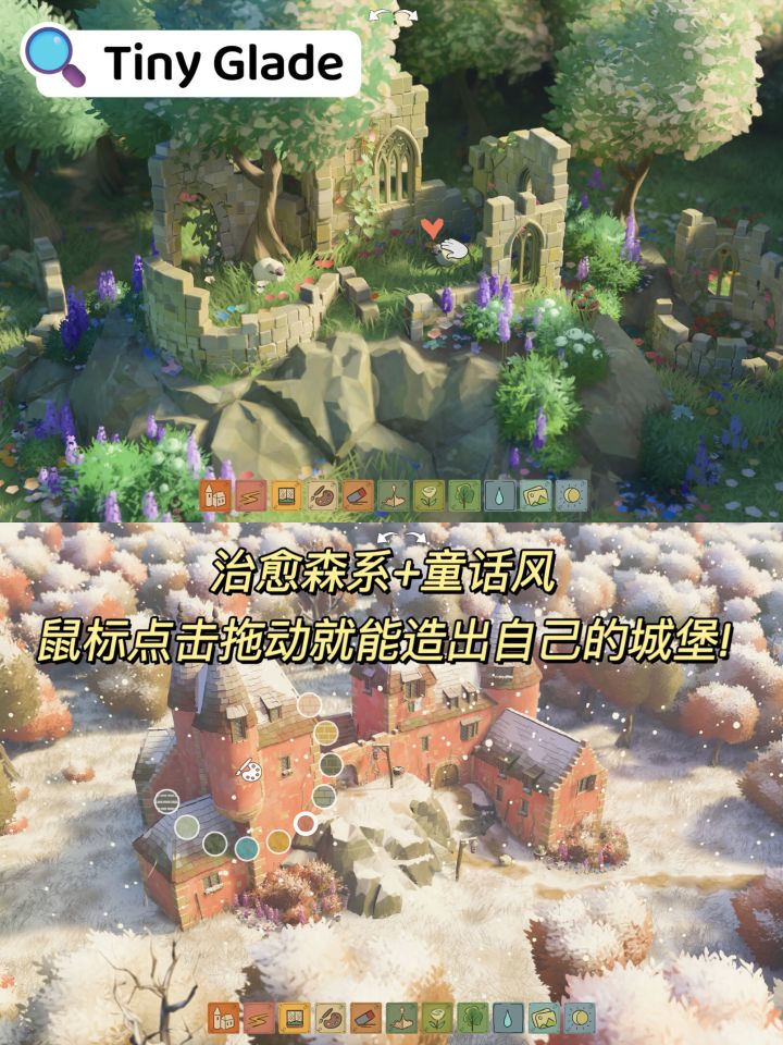 一款休闲、治愈的城堡建造小游戏。可以尽情探索建筑材料的互动,看游戏能用砖头、石块、木板搭出怎样的天地。在轻松治愈的森林中悠哉游哉,就能把被人遗忘的草地变成可爱的微缩景观。