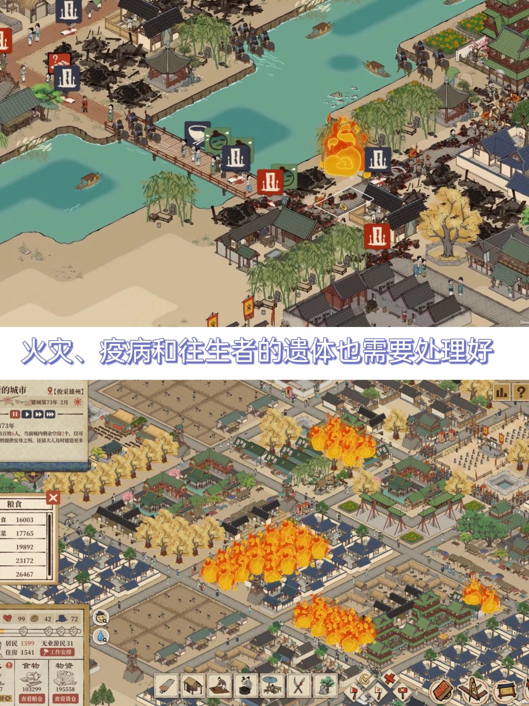 ·应对灾害疫病,抵御外族入侵,从一个破败的小村庄,发展到2000+市民同屏的繁华城市,成就一番图景