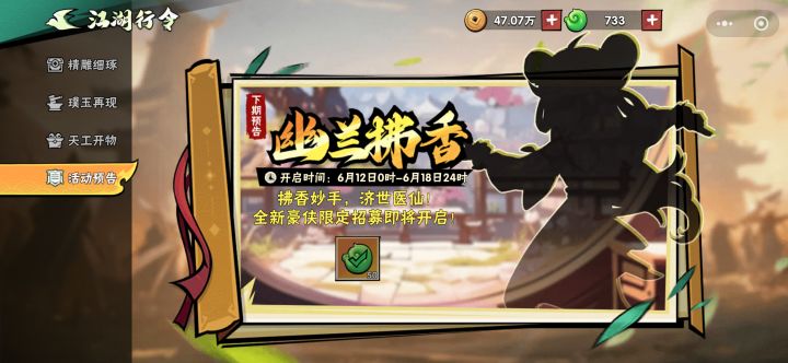 刚刷到游戏的广告,突然发现这跟下周新侠客的预告模型很像,应该就是她啦吧