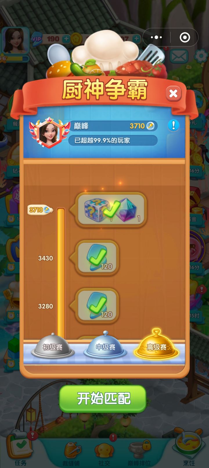 两个号的厨神都拿到了积分最高奖励,截图纪念一下