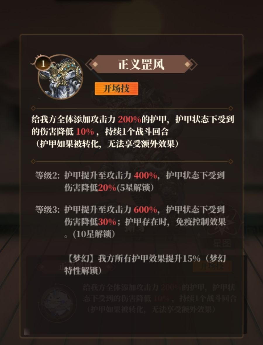 超高的开局护盾+减伤+免控三位一体,十分有效的抵抗对面的首回合爆发以及控制,泛用性极强,最强荒灵建议优先培养。