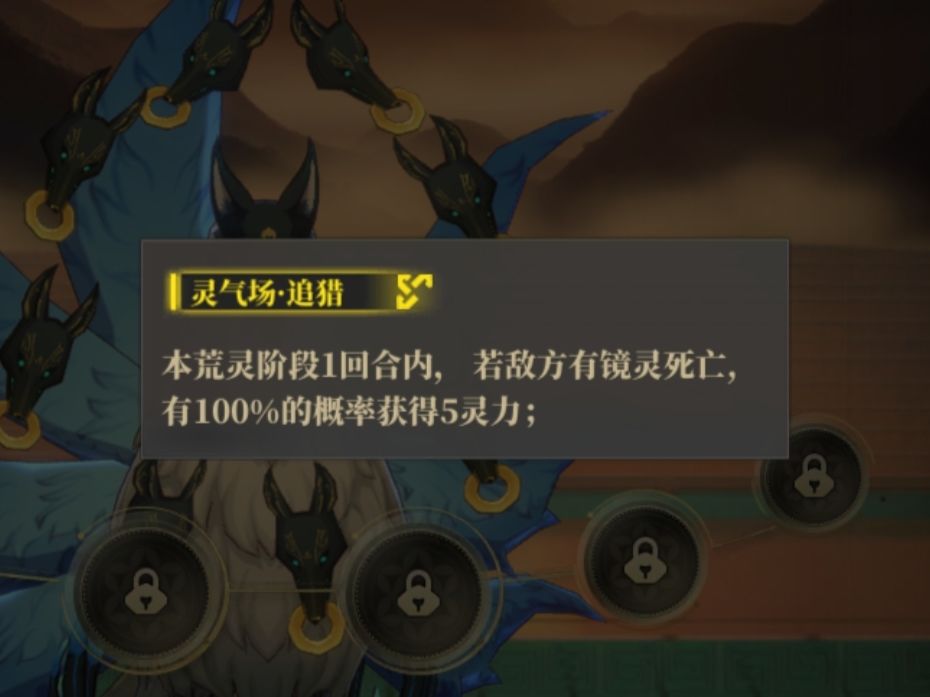 1)开场技:在战斗开始时释放,获得强力的开局效果,并且将荒灵切换为先锋技荒灵;