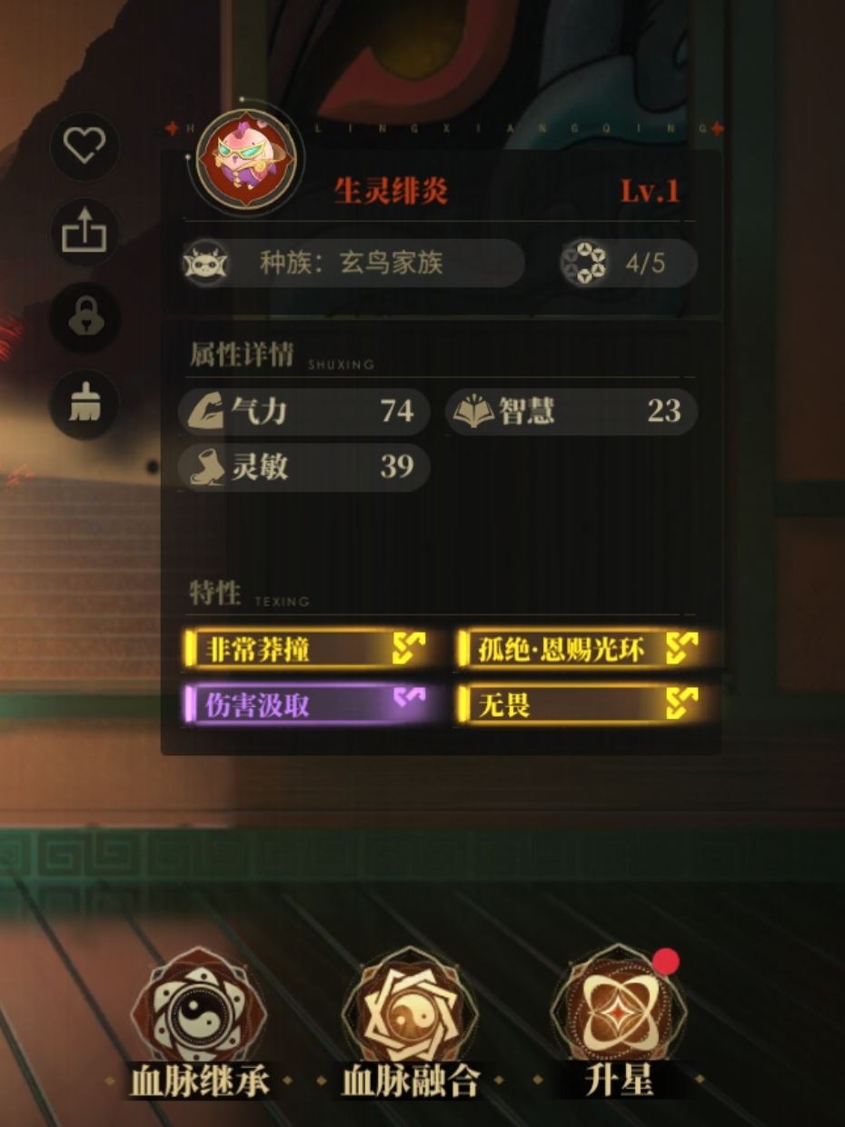 1.荒灵可以通过「血脉继承」,继承已经经过养成的同种族荒灵的星级和「天赋」,同