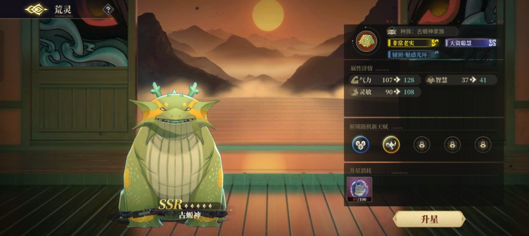 升星提升荒灵的基础三围,同时可以获得随机的天赋,其中解锁的第2、第5个天赋固定为提升荒灵技能。在5星,10星时固定获得荒灵技能等级提升。