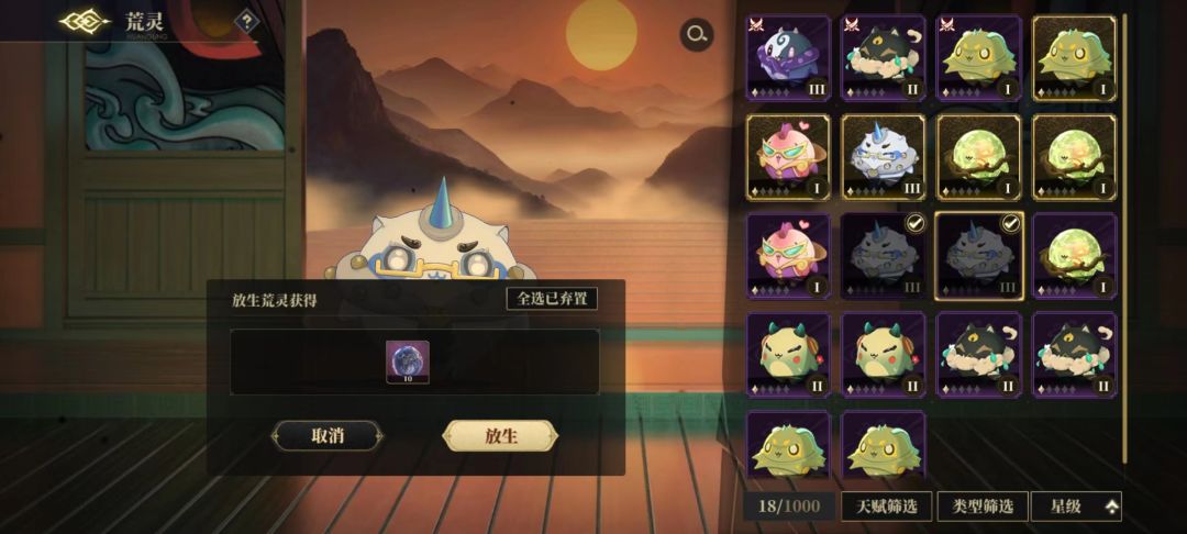 可以通过放生不需要的荒灵,获得对应荒灵种族的「孺灵珠」,「孺灵珠」可以用于