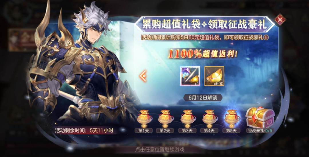 5、成长基金(4个)、限定礼包(4个)等氪金活动。