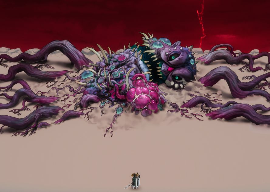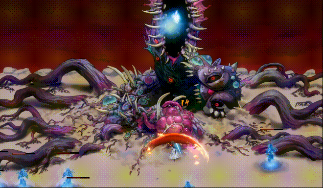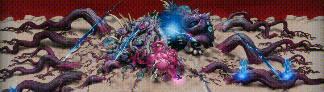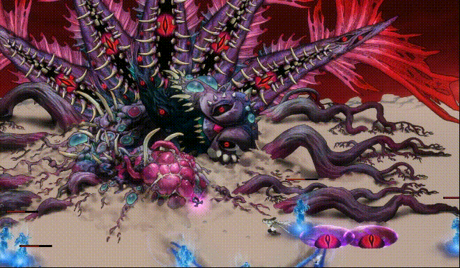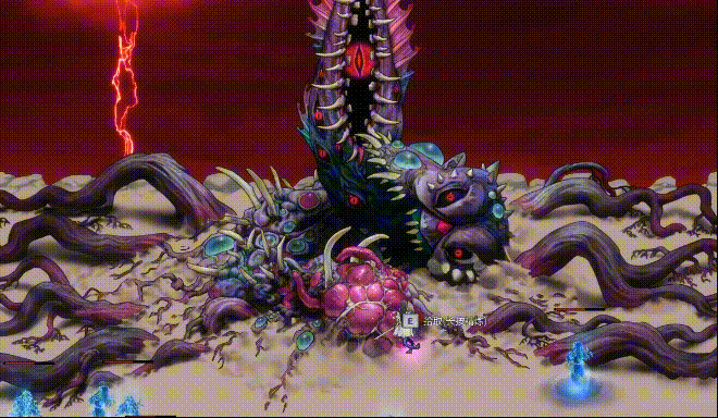 ②毒藤蔓延:屏幕两侧会伸出像血管一样的藤蔓造成范围伤害,并吸血,远离即可。