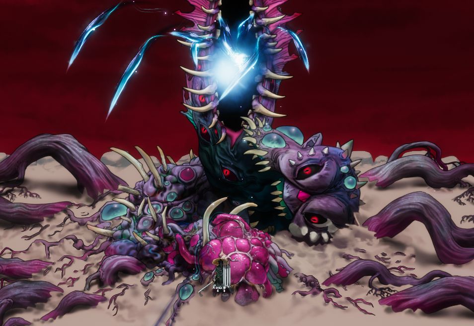 相对于较难的一个BOSS,有战斗场景变化,强制限制玩家位移,场景生命值,中毒等各种要素,一定注意及时清理毒囊。