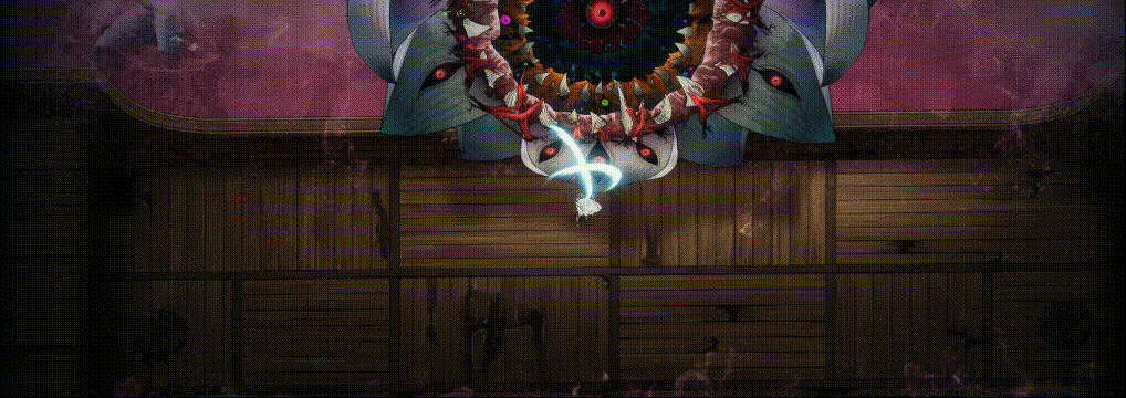 ⑥凝视攻击:在玩家位置地面生成眼睛造成伤害,需要时刻保持移动。