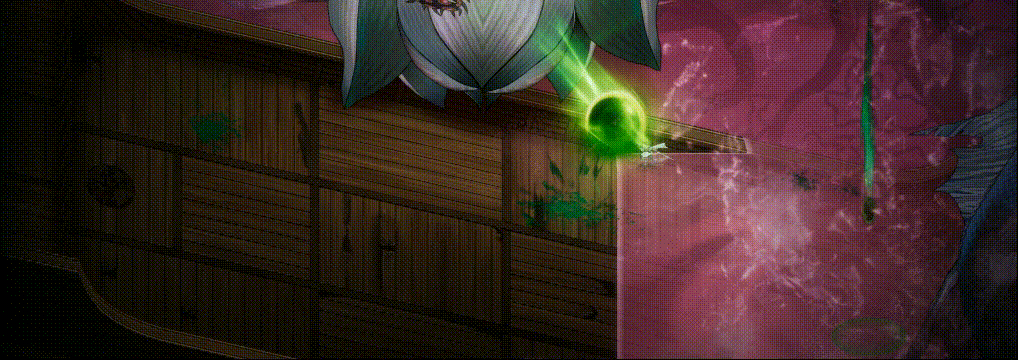 ④倾船攻击:怪物倾斜船身一侧,毒水蔓延,另一次会有货物落下,被击中时会将玩家打倒或打进水中,如落水则会中毒,贴近上侧板边即可。