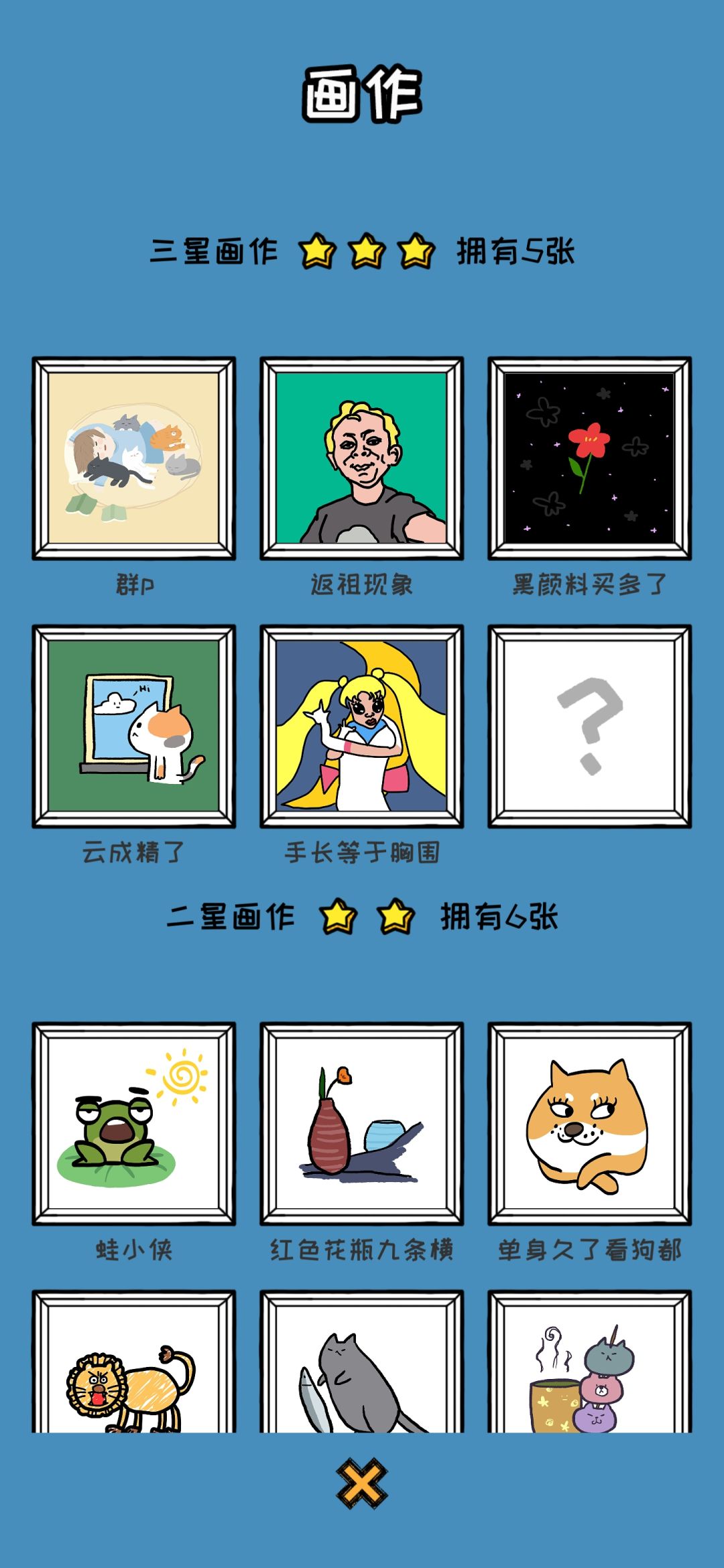 6,成就系统也太少东西了,建议加上画作成就和抽到相同作家成就,甚至可以弄点隐藏成就