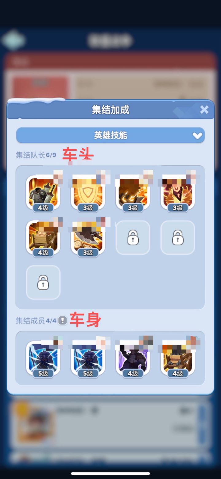 集结可以通过右上角小黄旗子点开拉到最下面看技能加成,加成的技能和英雄远征技能有关。
