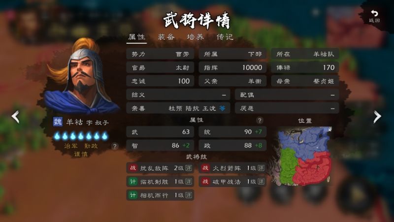 羊祜战绩比较水,不给兵势很正常,但是看那个复制的传记,不给休养生息或者深固根本,正常不,明明可以做成一个小鲁肃,回血技能+井阑技能