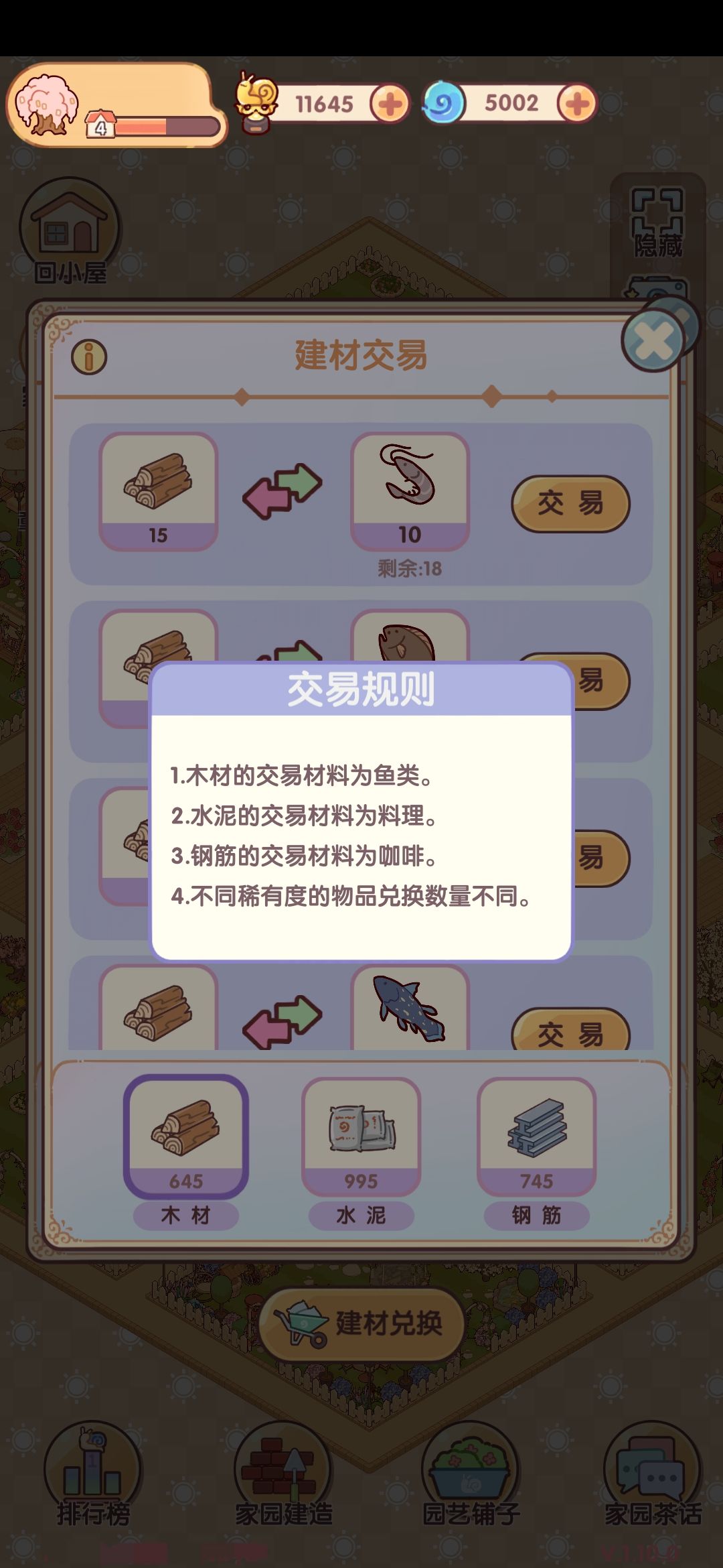4.家园建材兑换需至少持有一个物品才会显示该物品的兑换,不同物品兑换需要的数量也不同,一般是越稀有需要的越少