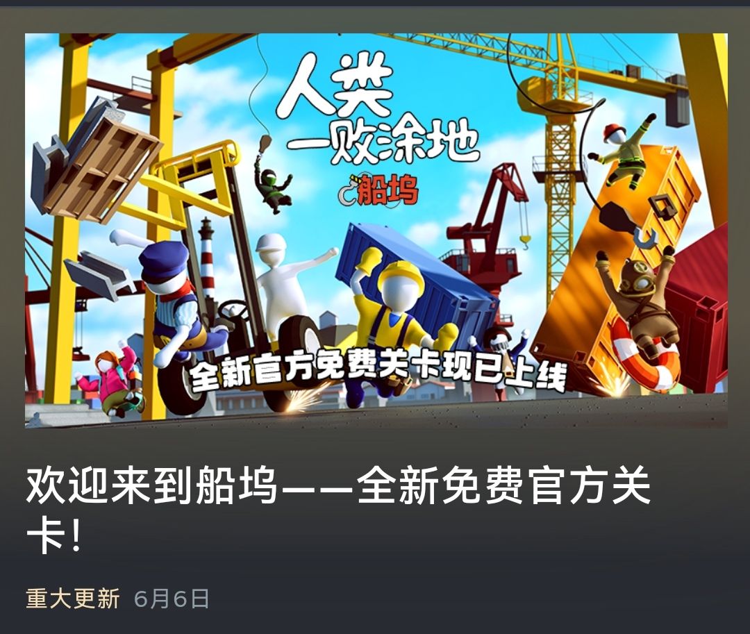 就在6月6日,《人类一败涂地》PC端更新了全新关卡——船坞,现在一起看看关卡的内容吧。