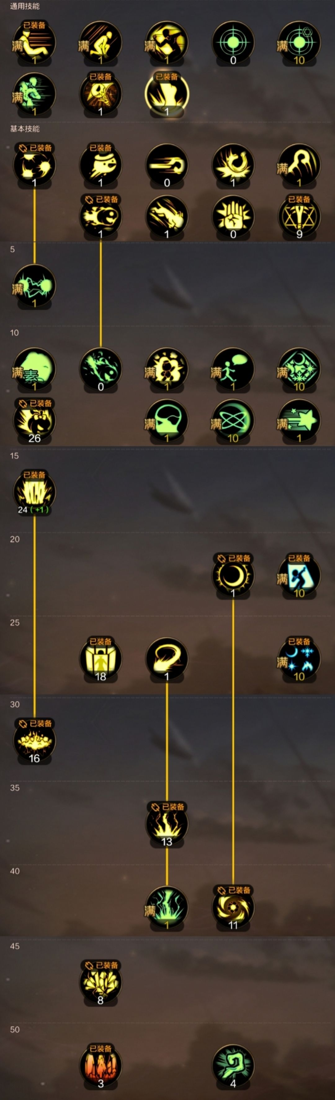 由于元素师技能站桩和延迟的特性,加点优先绿色属性技能和蓝色主动buff技能,其次加满高爆发无色技能,最后按爆发加小技能和控制技能。