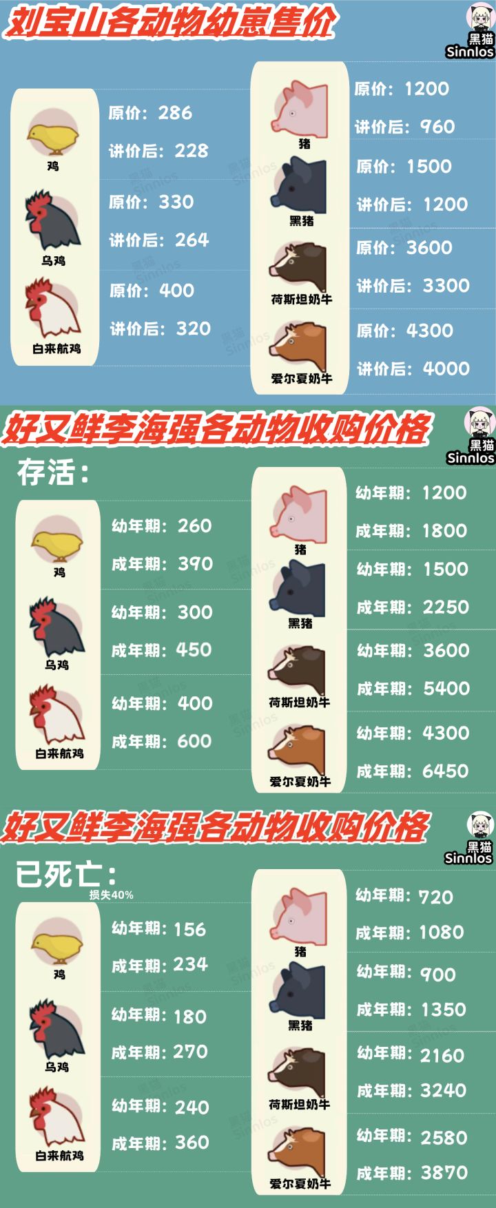 刘宝山各幼崽售价及李海强各动物收购价格