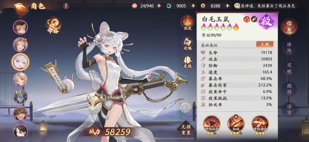 如果前面小怪没刮掉,用猴子和白骨精其一补掉,确保白老鼠每次都能摸 boss。