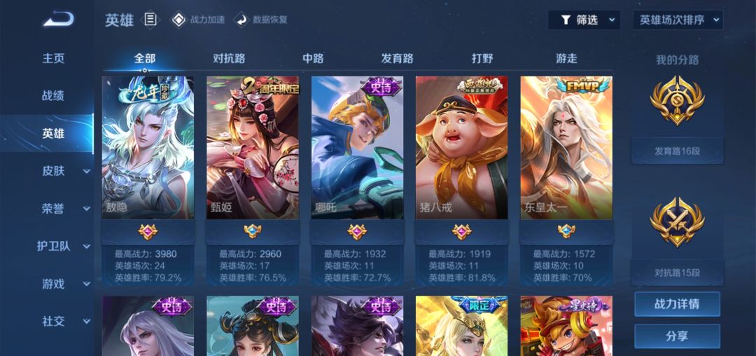 )常驻边路英雄:老头,程咬金,肉海诺。(队友去接应,队友死了,他没事