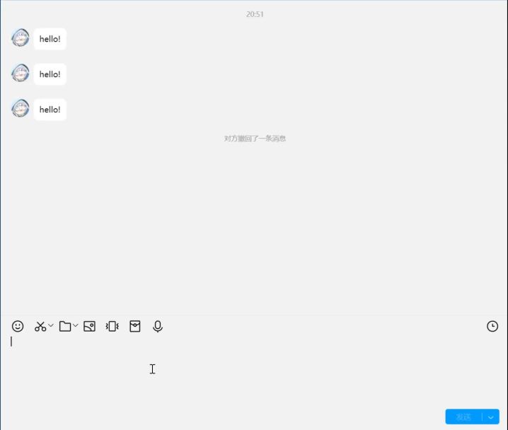 下面我们看一个完整运行响应文件的例子,我们将发送一条消息,并在延时两秒后将他撤回