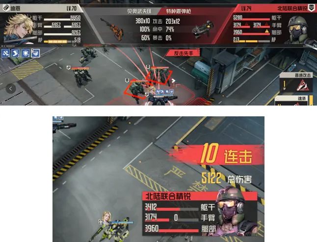最后一组我们则用全金3部位的金刚来进行攻击,其攻击力为380×10,某次打出的伤害为5122。所以仅从简单的攻击力来直观对比,全金1套装的游骑兵就已经要比至少都是全金3套装的对比机兵高伤一丢丢了,当然综合伤害会受到暴击的影响而出现一定的偏差,但理论上如果暴击数一致的话,游骑兵依然会占据一丢丢的优势,所以这点应该便是很多朋友所称的游骑兵非常强势的最大原因了。