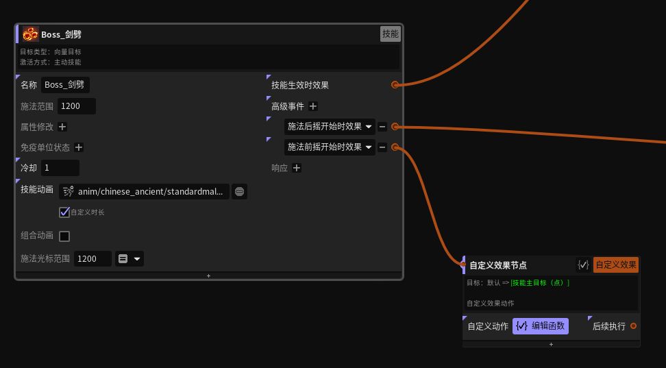 1。自定义动画时长, 这里我们可以调整前摇的时长,一般来说, 指示器是在施法前摇的时候创建,施法前摇结束后移除指示器。如果我想让指示器存在时长长一些,就把施法前摇时长调长一些。
