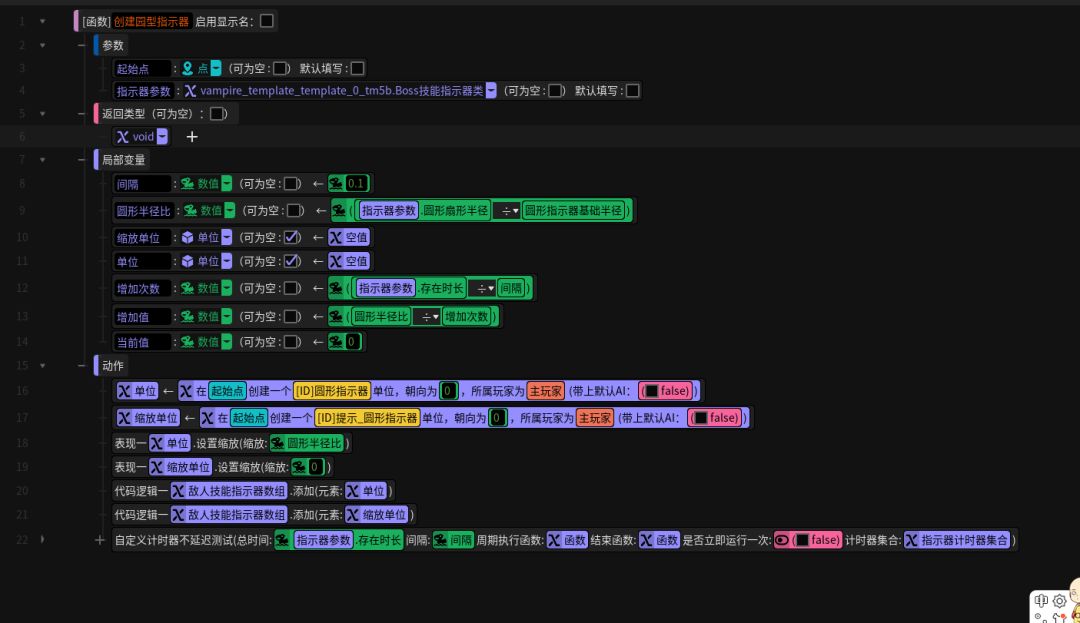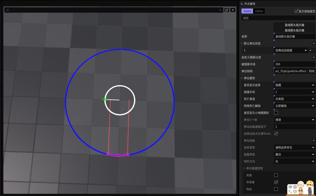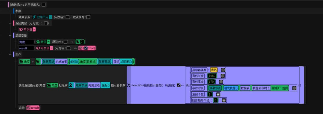 根据传进来的参数和直线长宽基准值,(之前我们定义的360 和120)然后求出长宽比,就可以创建一个直线指示器。设置指示器的缩放大小,并在施法前摇结束后移除。