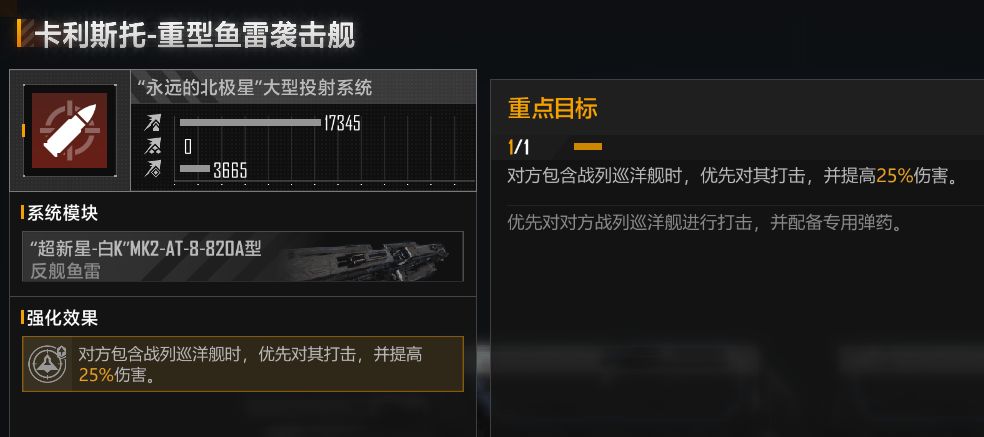 作为巡洋舰中对舰输出的扛把子,卡利斯托对舰型拥有“战巡杀手”之称。搭载了“超新星-白K”MK2-AT-8-820A型反舰鱼雷的重卡,拥有全巡洋舰最高的反大曲射火力,在没有升级的情况下,单发鱼雷伤害就高达1600,足以打穿大型舰船的护甲。