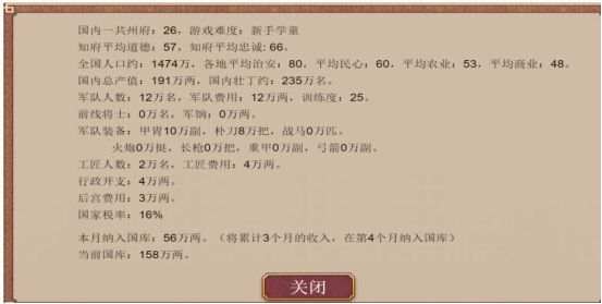 经济能力:赵眘的经济能力可以说是非常强势,农业和商业各加150的上限。而且一开始自带26座城和直接+1%的税收,开局就有不错的经济。稍微弄一下就可以做到“财务自由”。而且因为初始就有26座城,人口增加BUFF只要到民心80就能吃到满了。