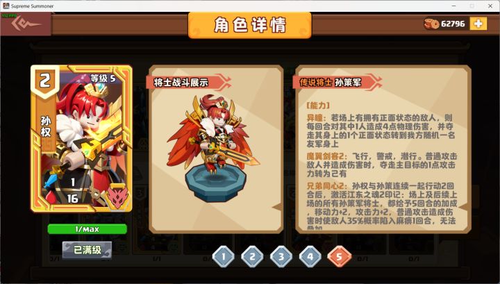 孙权的潜力还是很大的,后续如果出一些强力buff牌他还是很有操作空间的,建议现阶段主公养一个三级的噢。