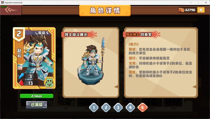 点评:身材普通,作为稀有橙孙权的地位属于比较一般的存在,他被夏侯赵云张合所克制。技能虽多,但能用上的只有异瞳这招偷buff。起手摸到不留,但我带他上阵的原因主要是作为一张功能牌,如下几个场景: 1.对方下刘表的时候直接反手破解水寒(全体冰冻),并为对方全体附近水寒效果。