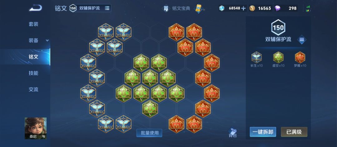 这一种出装铭文选择带十长生和梦魇,长生补宿命的血,大辅助出完第一件选择面具补伤害就已经神装了,因为节奏很快,很多对局霸者刚一做完差不多就结束了有时候都等不到霸者。面具一出,40cd能加血能补伤害,后期出完时之预言那会满级大招11秒一个草随便放随便飞。这一套有一点伤害,草可以无脑丢对面脸上就不用管草了,如果队友压进,安全就可以飞过去。